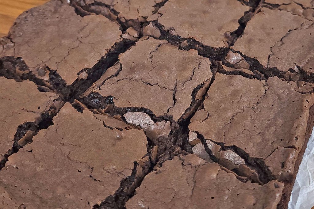 Isso geralmente acontece por tempo excessivo de forno, temperatura alta demais ou pouca gordura na receita. Brownie deve sair do forno ainda úmido no centro.