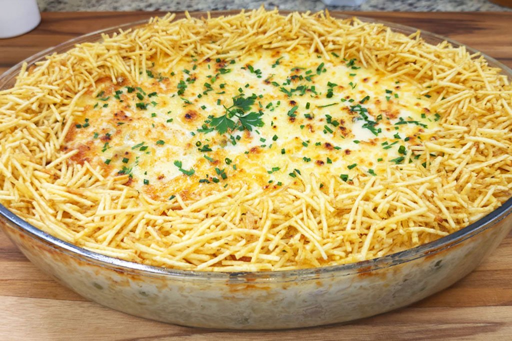 - Decore com cheiro-verde e batata palha ao redor para crocância. Sirva imediatamente, bem quente, cremoso e saboroso.