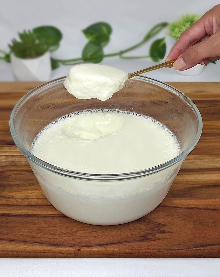 - Se formar um líquido por cima, é o soro do leite, basta misturar antes de consumir.