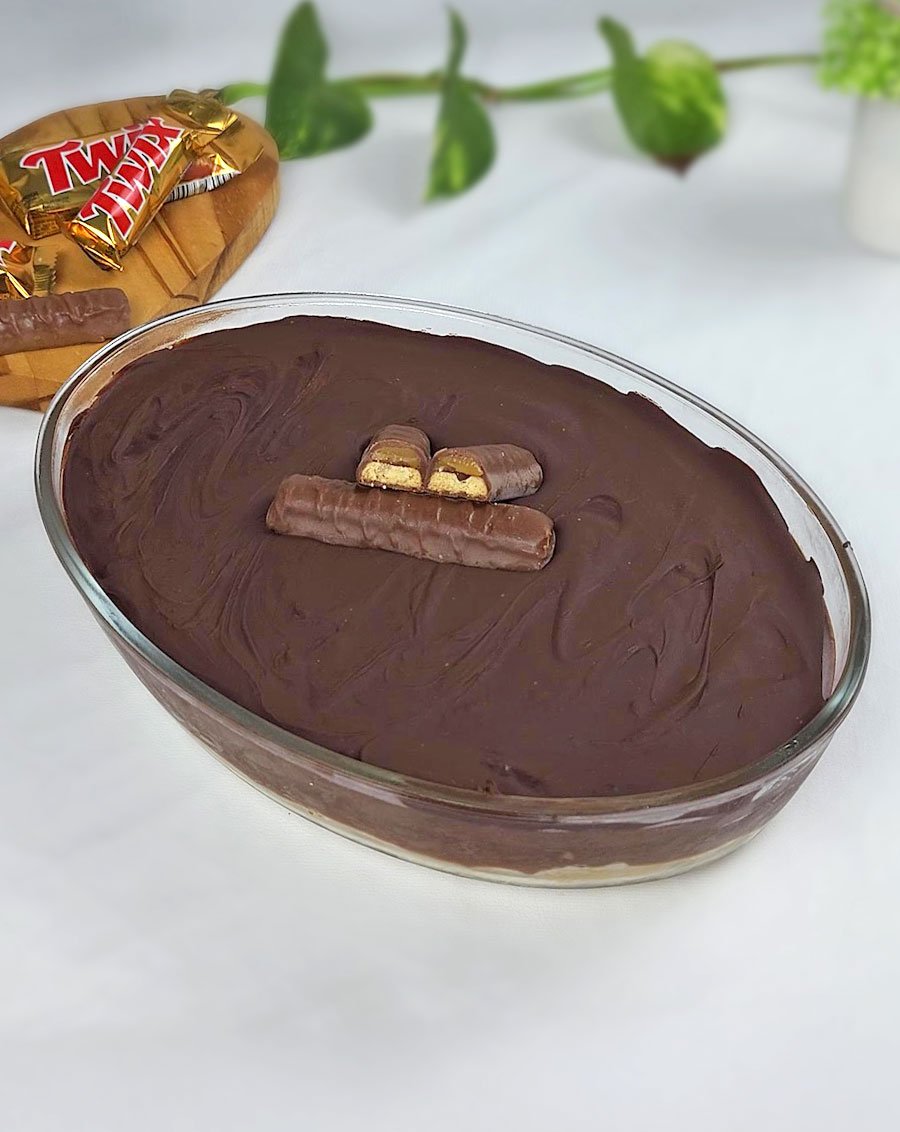 Sobremesa Twix de Travessa: Caramelo, Chocolate e Massa Crocante