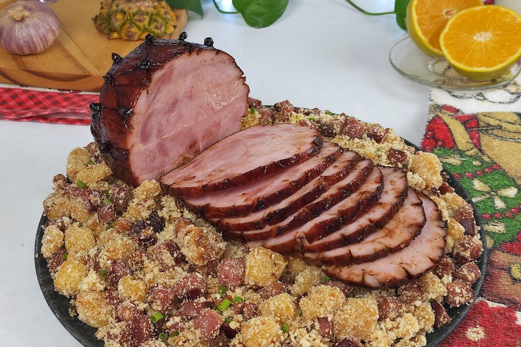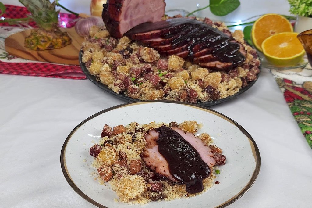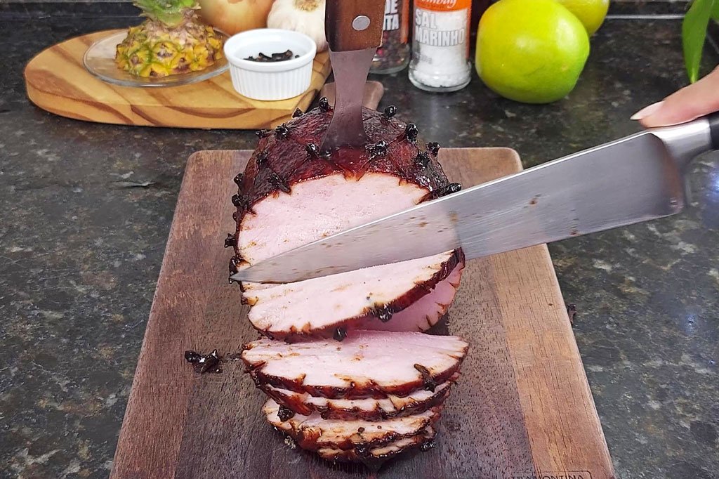 ▪️Pincele o molho várias vezes, especialmente na etapa final. Isso realça o sabor, melhora a cor e deixa o tender com aparência ainda mais apetecível.▪️O cravo-da-índia é opcional, mas faz diferença no aroma e na apresentação, deixando o tender com cara de prato natalino clássico. ▪️Deixe o tender descansar por alguns minutos antes de fatiar. Isso ajuda a manter os sucos da carne e facilita o corte. ▪️Sirva o molho barbecue quente, despejando um pouco sobre as fatias e deixando o restante à parte para quem quiser repetir. ▪️Capriche na apresentação: uma travessa bonita e acompanhamentos coloridos, como farofa de abacaxi ou frutas grelhadas, valorizam ainda mais o prato.▪️Validade: até 3 dias armazenado na geladeira bem acondicionado em recipiente fechado com tampa ou embalado corretamente para evitar contato com o ar. Nunca deixe o tender pronto fora da geladeira por mais de 2 horas após o preparo, especialmente em dias quentes.